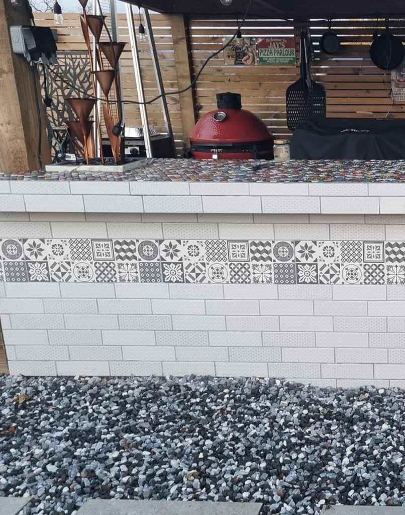 This stunning outdoor space was designed for year-round family gatherings, featuring a bespoke bar and kitchen area with heat lamps for comfort in any season. A perfect blend of style and functionality!